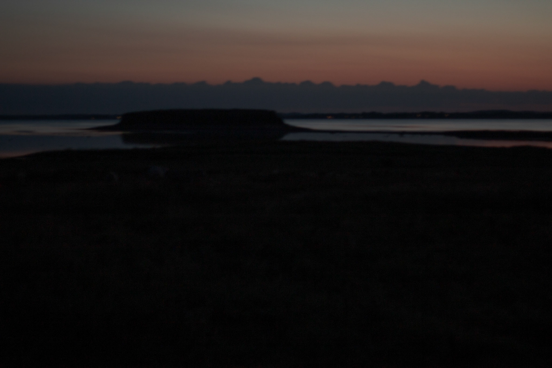 En serie billeder der er taget om natten med bevidst brug af bevægelse og sløring. To af billederne er fra Roskilde fjord ved Risø.